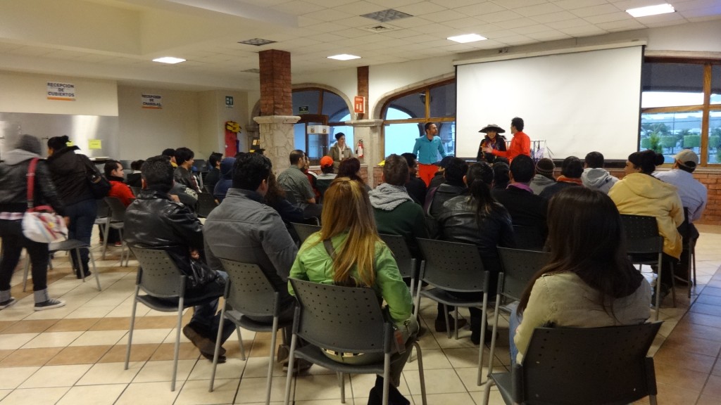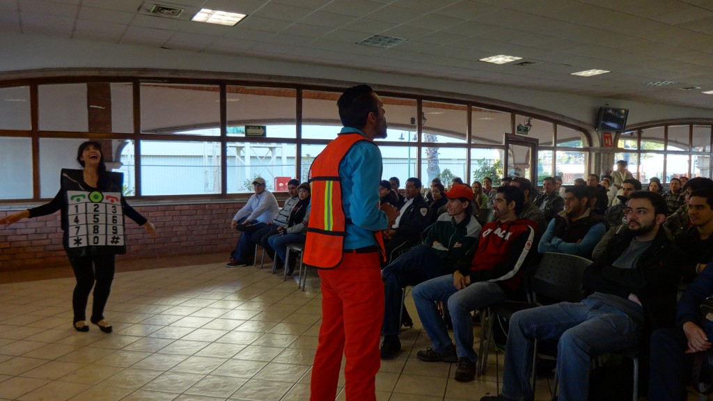 Contamos con varios temas para la concientización del uso del equipo de protección personal (E.P.P.), seguridad vial para motociclistas, las normas de seguridad en el trabajo, el exceso de confianza en las herramientas, el adecuado manejo del montacargas, el trabajo en alturas, la conciencia ante los actos inseguros y el uso del celular como factor de riesgo. Con mimos, con payasos, con luchadores, o con personajes del contexto laboral. La cantidad de actores y la duración de la dinámica varía según la obra.