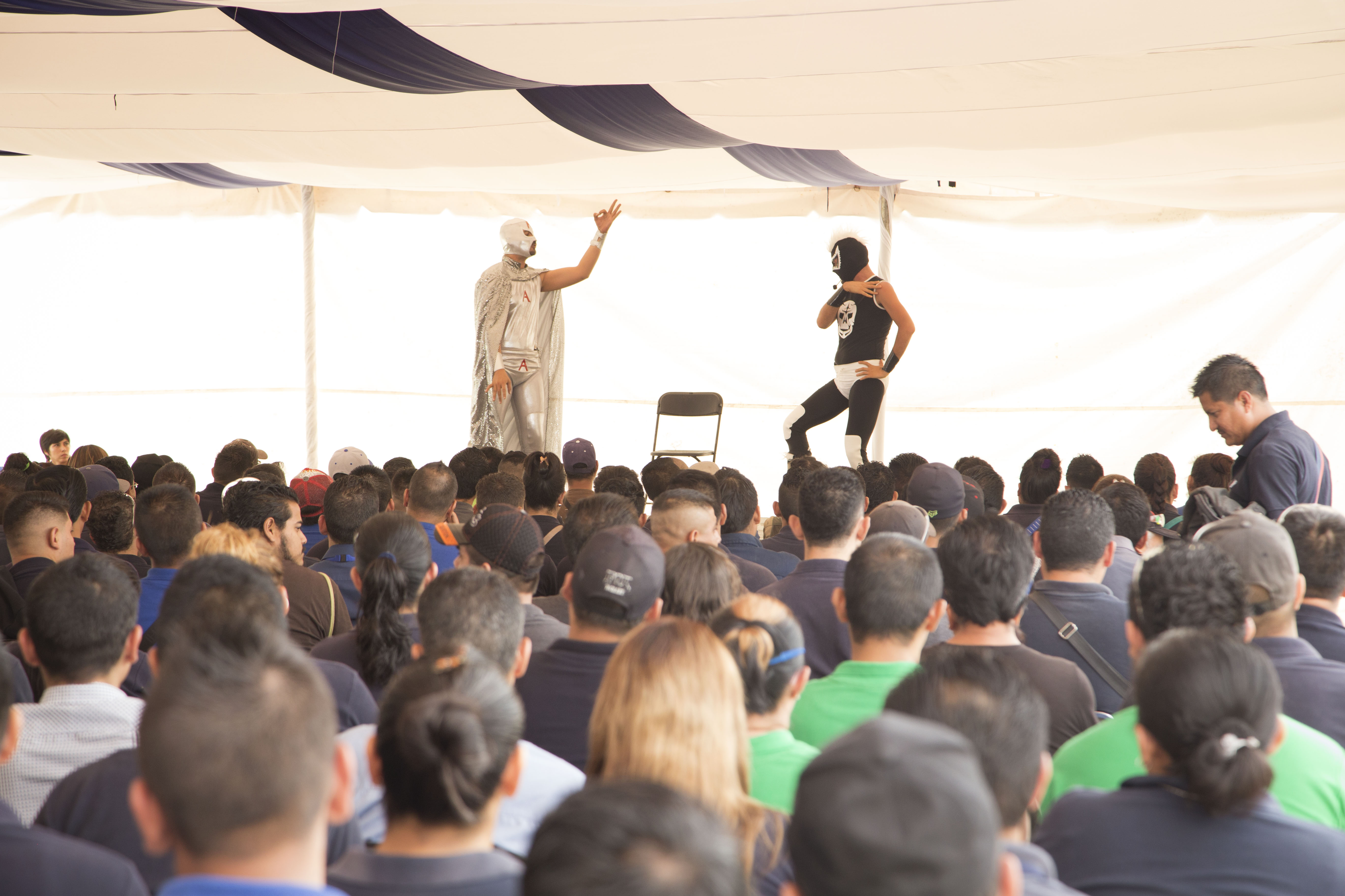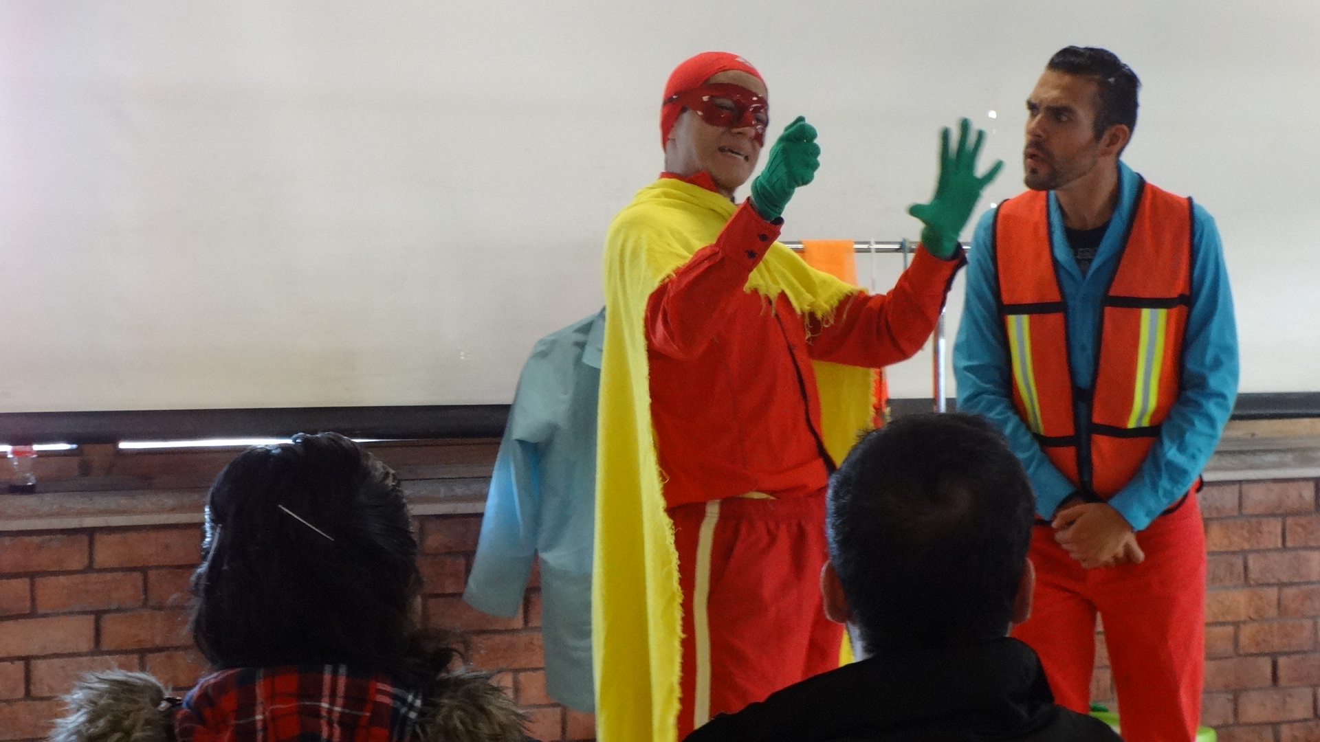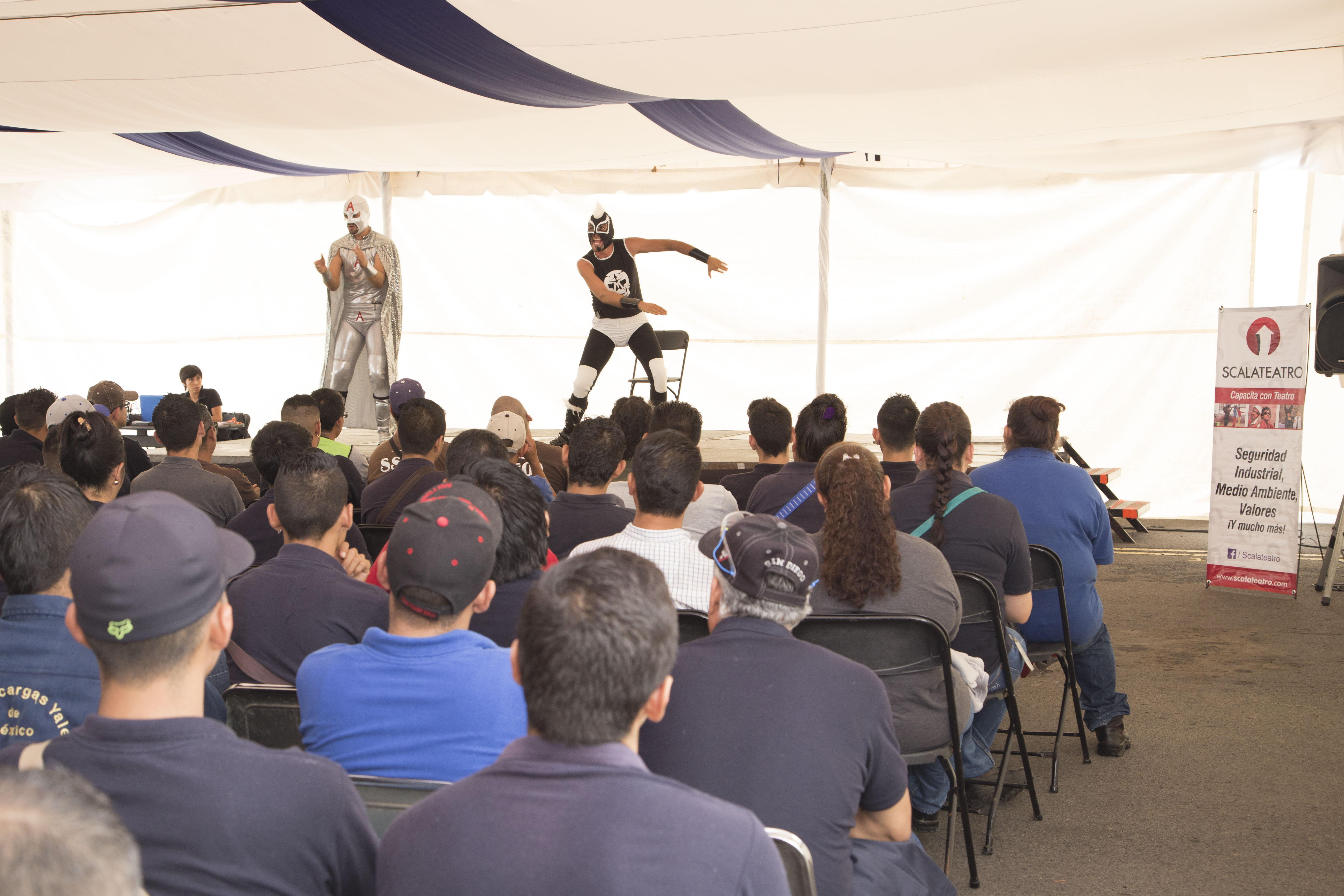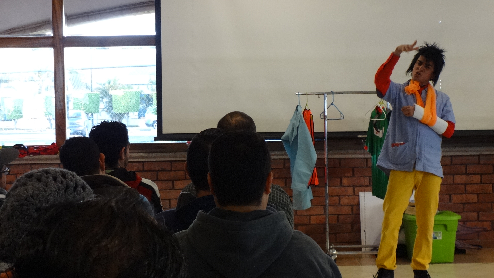 Contamos con varios temas para la concientización del uso del equipo de protección personal (E.P.P.), seguridad vial para motociclistas, las normas de seguridad en el trabajo, el exceso de confianza en las herramientas, el adecuado manejo del montacargas, el trabajo en alturas, la conciencia ante los actos inseguros y el uso del celular como factor de riesgo. Con mimos, con payasos, con luchadores, o con personajes del contexto laboral. La cantidad de actores y la duración de la dinámica varía según la obra.